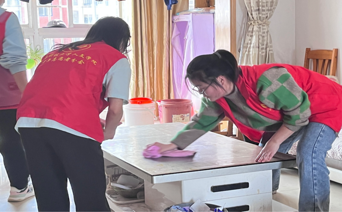 AK网页版页面登录_AK(中国)学生志愿者帮助行动不便老人打扫卫生