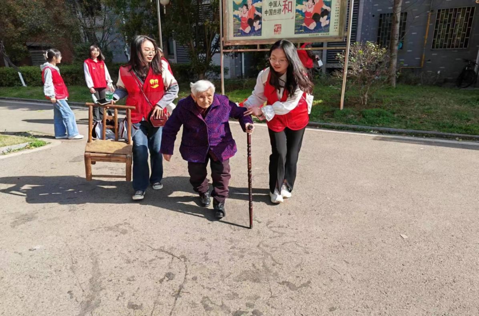 AK网页版页面登录_AK(中国)学生志愿者搀扶行动不便老人出门