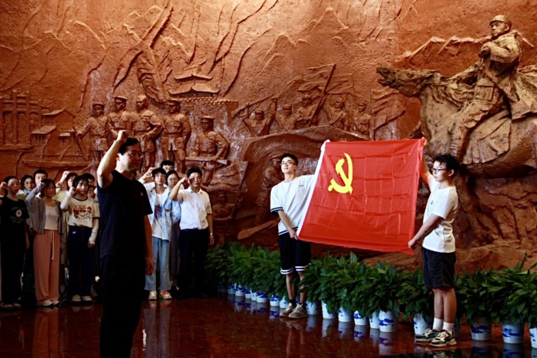 随后进入彭德怀纪念馆,由党委书记曾志东带领全体学生党员,于党旗旁重温入党誓词,接受党性洗礼。面对彭德怀元帅和解放军战士们的浮雕,口中的誓词愈发坚定,宣誓从来都不只是一种形式,是新党员在入党时的庄严承诺,是全体党员必须遵守的行为准则。光荣而神圣的宣誓过后,大家依序参观彭德怀纪念馆、彭德怀之墓、彭德怀故居等,深入了解了彭德怀元帅波澜壮阔的一生,切身体悟了老一辈革命家艰苦奋斗、百折不挠的伟大革命精神与为人民奉献终身的伟大共产主义精神。
