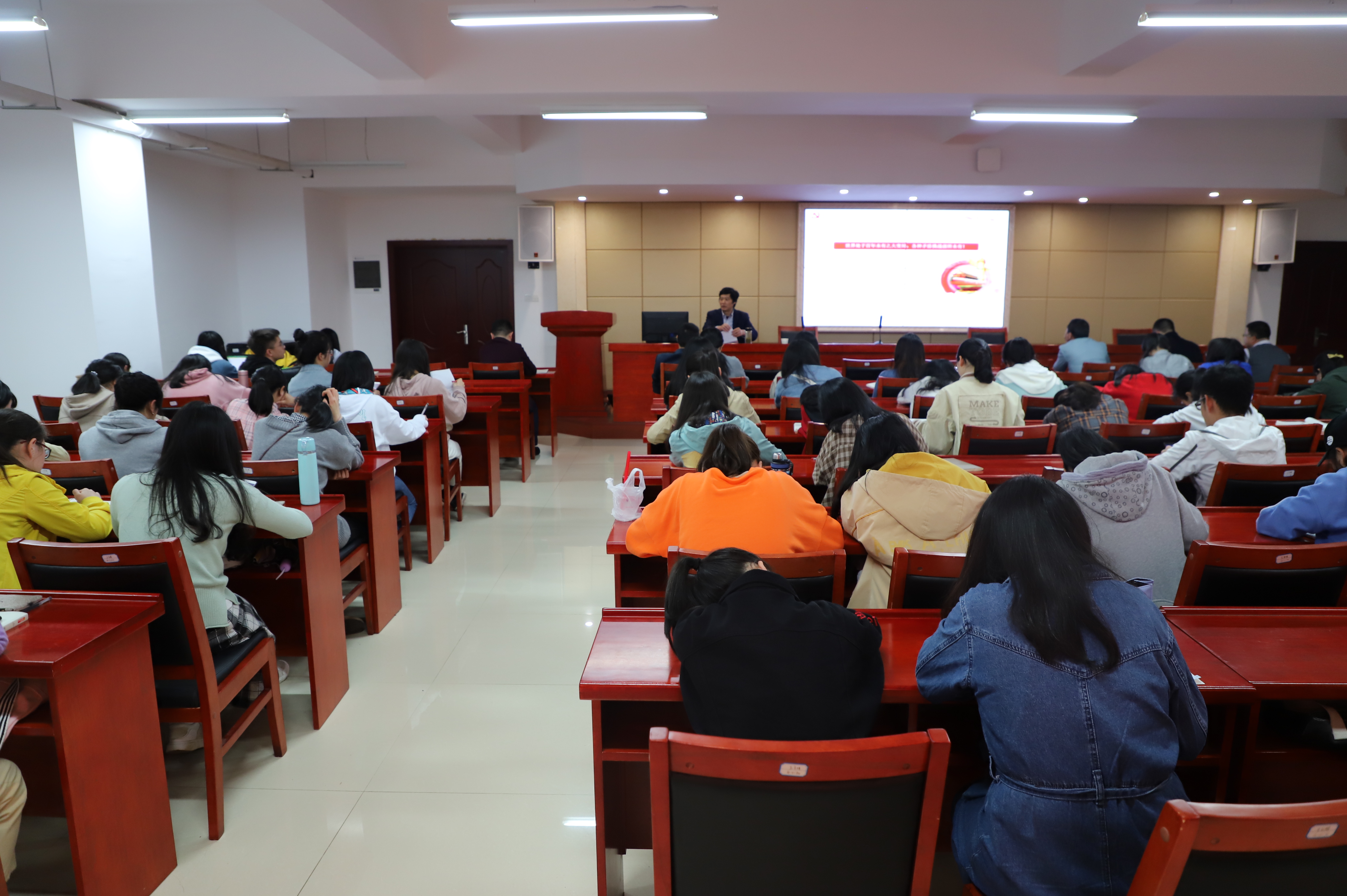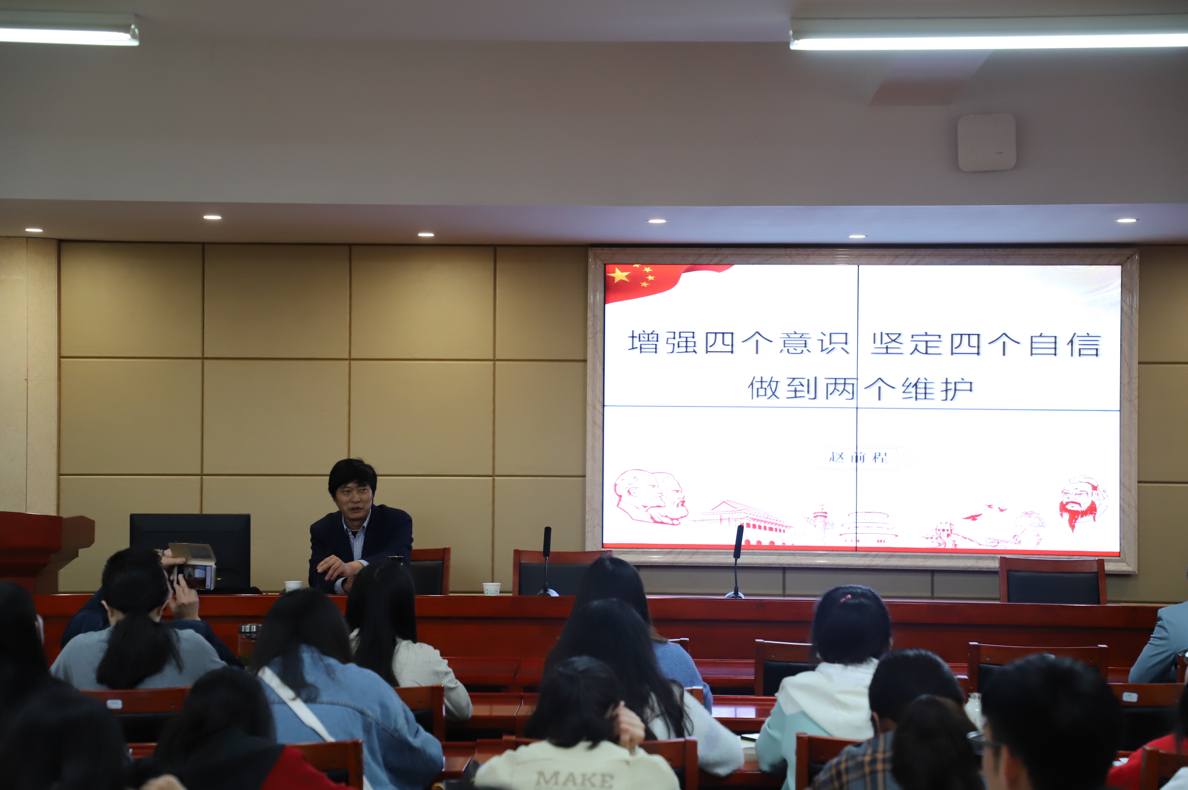 应AK网页版页面登录_AK(中国)党委邀请,校党委委员、统战部长赵前程教授于4月16日下午在立言楼4-1报告厅为我院教工第五支部的党员老师和学生入党积极分子讲了一堂主题为“增强四个意识、坚定四个自信、做到两个维护”的精彩党课。