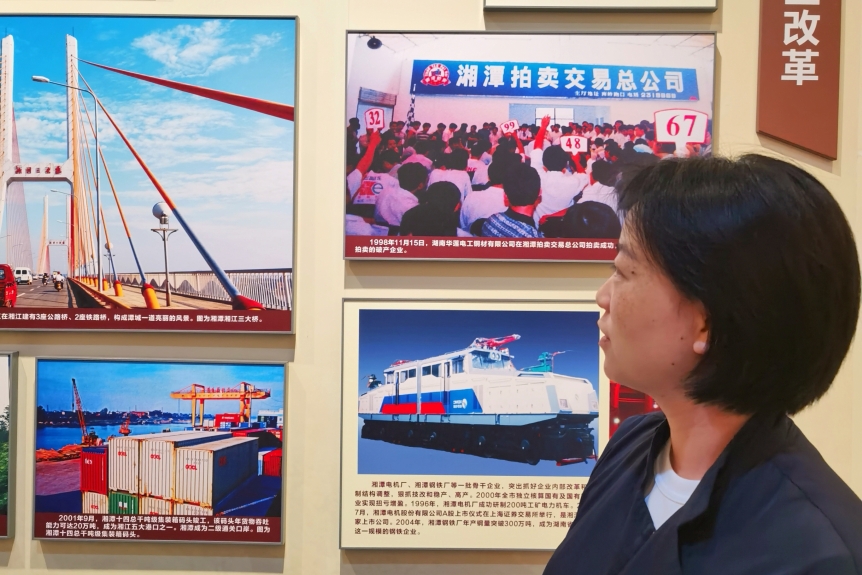 在博物馆三楼党史馆,一支部党员依次参观学习觉醒、革命、建设、改革四个部分,深入了解湘潭近代以来历史进程,实地感受湘潭发展变化。通过讲解员的讲述,进一步了解在大革命、土地革命、抗日战争、解放战争、社会主义建设、改革开放等不同时期,湘潭人民在党的领导下建设党的组织、开展革命斗争、发展社会主义、进行改革开放的伟大历程。