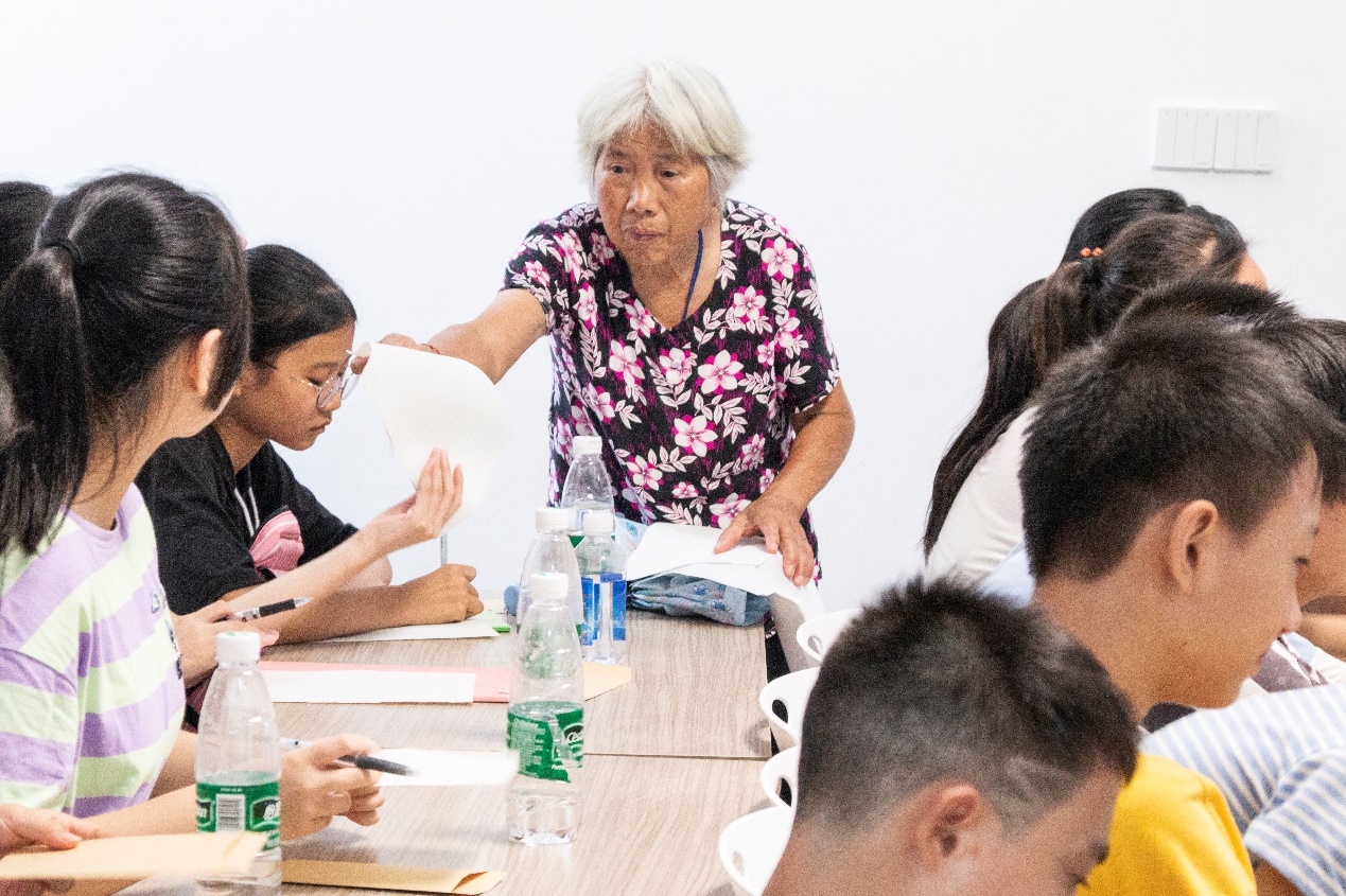 ▲杨莲金老师为同学们分发作业