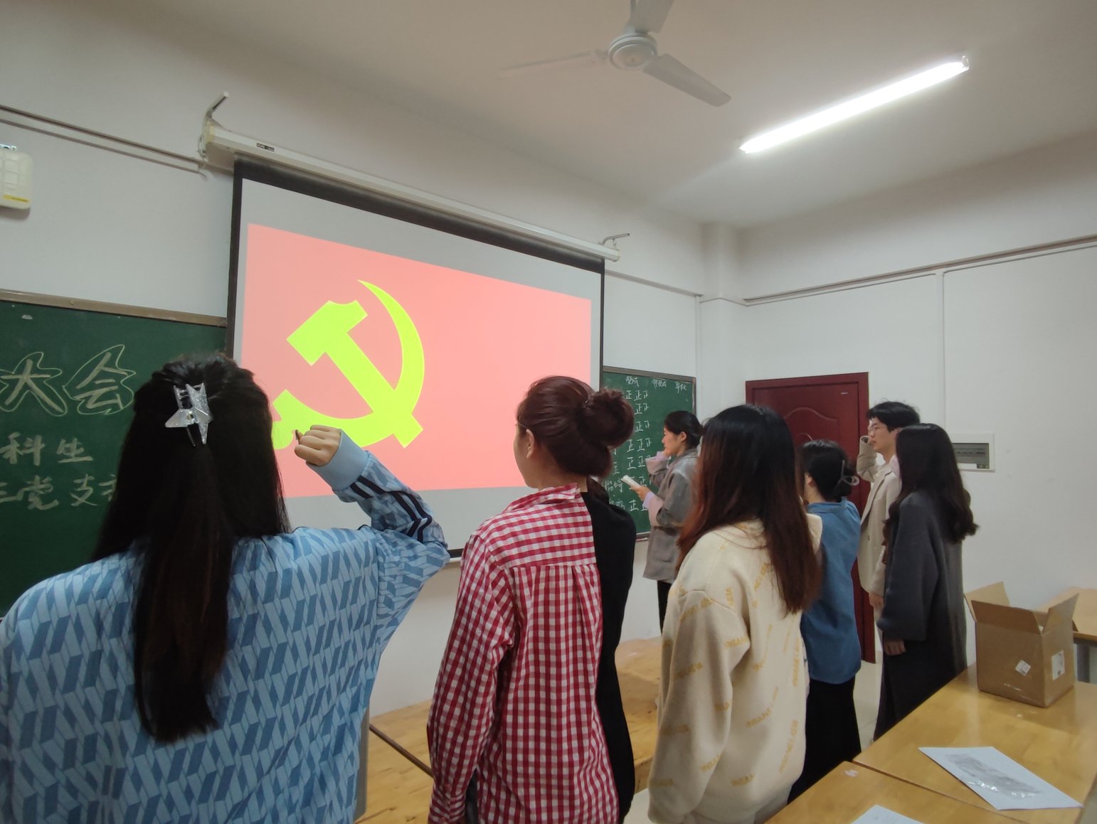 会议伊始,邹珊、谭启发等6名发展对象依次上台宣读自己的入党志愿,并由各自的入党介绍人介绍其情况。随后,支部委员向大会报告了拟发展对象政审情况。正式党员对发展对象进行了充分讨论并采取无记名投票的方式进行表决,结果表示邹珊、谭启发等6名拟发展对象全票通过,正式成为支部预备党员。