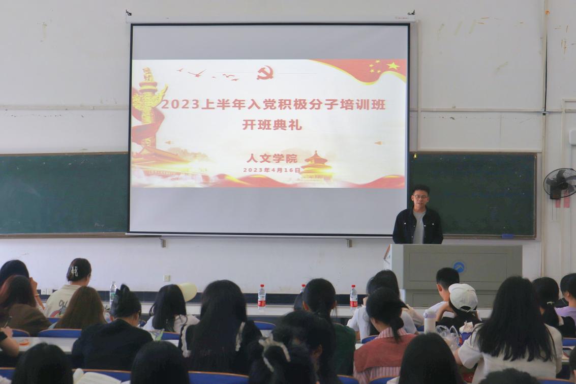 4月16日上午,由AK网页版页面登录_AK(中国)分党校举办的2023年上半年入党积极分子培训班开班典礼暨第一次党课于第一教学楼504教室顺利举行。我院党委副书记罗振军与马克思主义学院思政系主任凌应生出席并授课,此次参培的入党积极分子共有375人,研究生党建办公室负责人钟正主持本次培训。