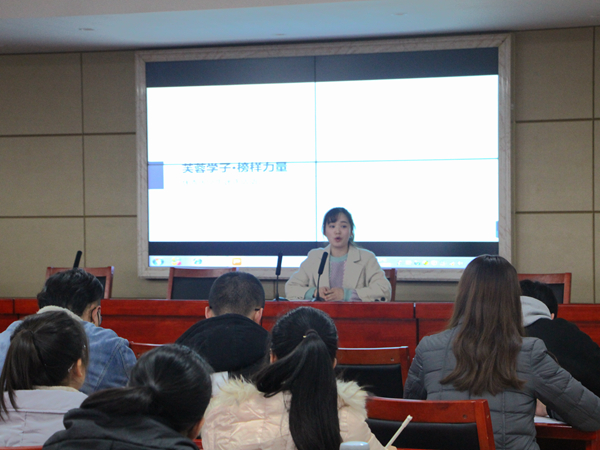 为使同学们对“芙蓉学子”项目有更深入的了解,科技部李东萦介绍了该项活动具体内容。“芙蓉学子计划”旨在通过挖掘、宣传在校大学生积极进取、拼搏奋进的感人事迹和先进典型。在当代大学生中树立自强自立的榜样,激励广大青年学生向身边的榜样学习。活动设置五个奖项,我院青年志愿团入选为“芙蓉学子·公益行动奖”,吴玉容同学入围“芙蓉学子·自强不息奖”。今年是我院申请“芙蓉学子”项目的第一年,希望通过宣讲形式增强项目影响,号召各班同学为我院入围学子助力。