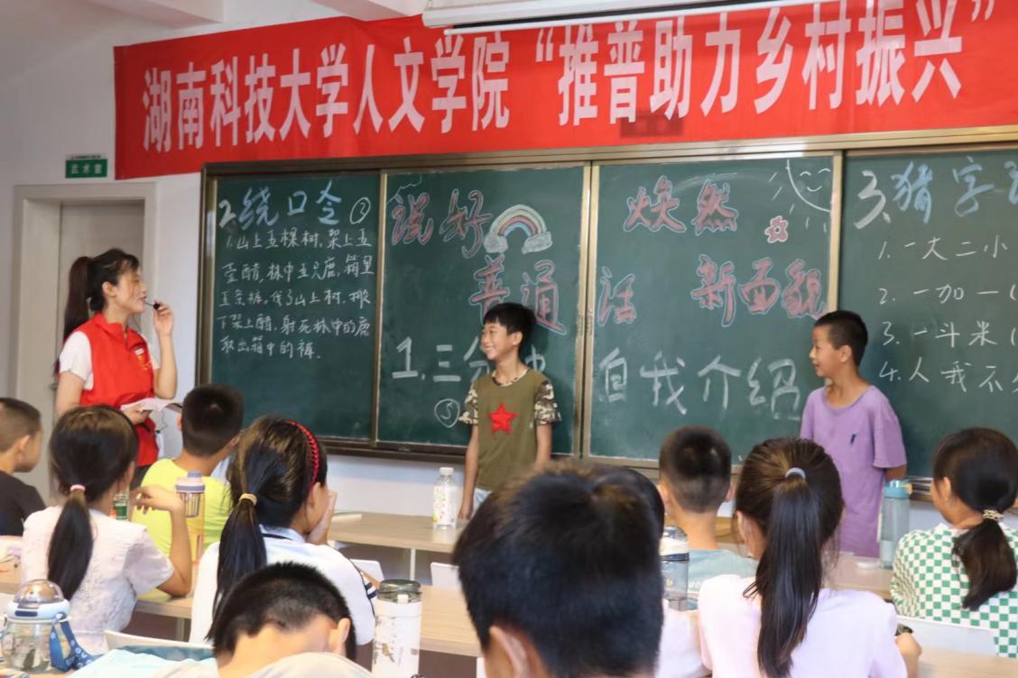 7月9日上午,株洲攸县石羊塘镇儿童之家传来了一阵又一阵的鼓掌声,四年级孩子们的欢笑声此起彼伏地传来。走进教室一看,是志愿者龙杨慧在教孩子们读绕口令。“发扬国风,从说中国话起;说中国话,从普通话开始。”为了圆满完成推普助力乡村振兴的志愿服务目标,在乡村大力推广普通话,传承优秀传统文化,为此AK网页版页面登录_AK(中国)AK网页版页面登录_AK(中国)“三下乡”实践团队在暑期学校展开三下乡特别课堂第三期:说好普通话,焕然新面貌。