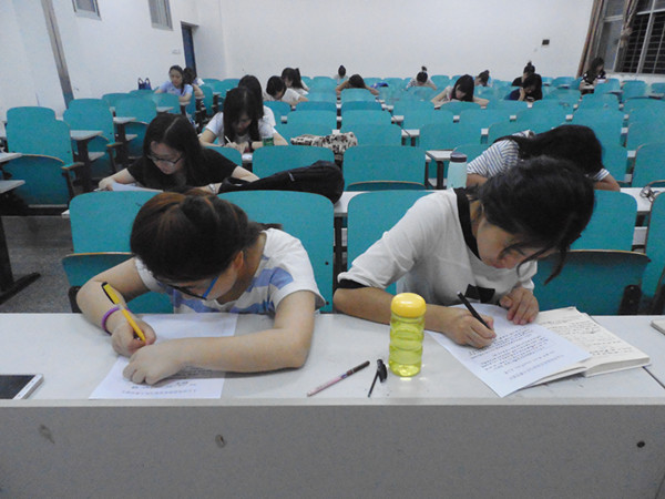 5月21日晚,我院于九教举办新闻系现场写作比赛,12、13、14级新闻专业学生分别在九教105、106、110、204四个教室,执笔发声,检验学习成果。