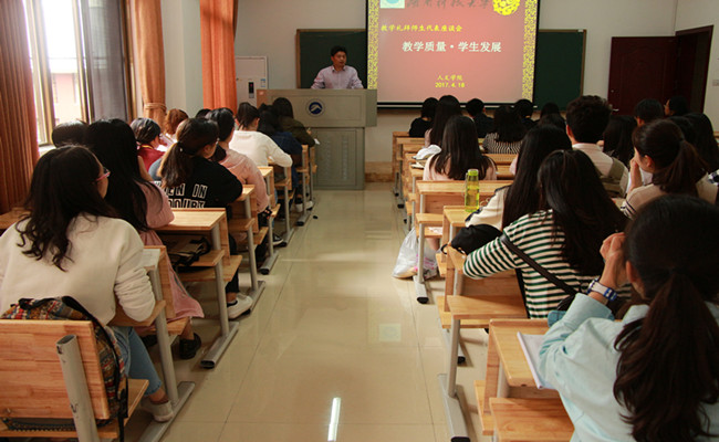 为推进教学礼拜周各项工作有序进行,进一步了解并解决本科教学各环节运行状态和存在的突出问题,4月18日下午,我院于文科楼417教室举行教学礼拜师生代表座谈会。我院学工办主任罗振军,学工办赵华老师、王嘉敏老师及各年级班级代表参加此次座谈会。