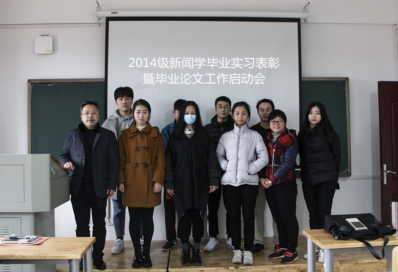 12月12日下午,2014级新闻学专业毕业实习表彰暨毕业论文启动会在文科楼B417教室准时召开。