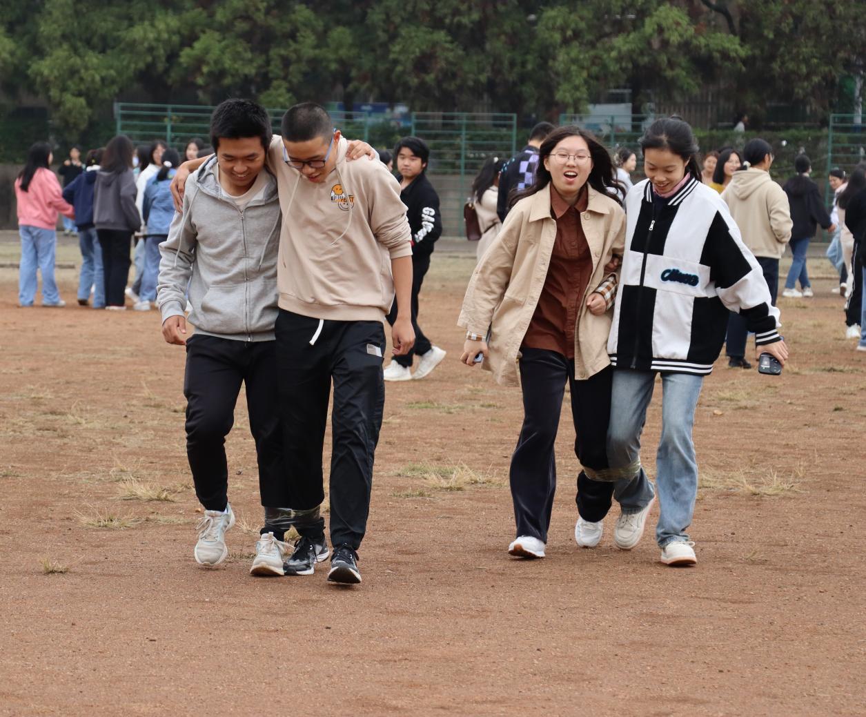 随后,各小组在组织部的带领下开展“两人三足”、“一二三木头人”、“数字炸弹”、“爱的抱抱”等小组游戏,学生干部和组织者们积极参与,互相配合,运动场上回响着愉快的笑声。作为本次活动的主要负责人之一,组织部副部长蒋拓锋表示,虽然举办本次活动遇到了种种阻碍,但他们不惧挫折、迎难而上,与工会老师联系,与学生干部沟通,最终圆满完成本次培训活动。“通过这次活动,我感受到新晋学生干部之间的真挚情谊,各部门之间正通过干部培训形成一个更为紧密的集体、成为一个更加和谐有爱的大家庭。”蒋拓峰感慨道。