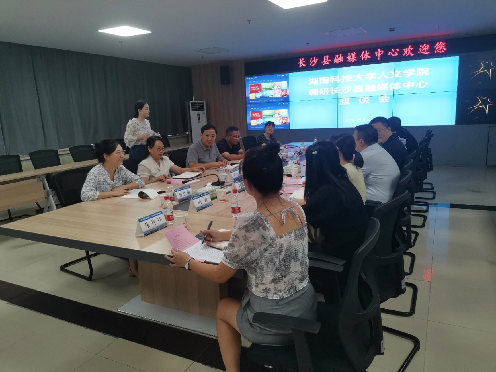8月18日,AK网页版页面登录_AK(中国)副院长袁星洁、实验中心主任张顺军、新闻系主任刘艳凤、副主任王超群、广告系主任曹佳俪、教师符红娟等一行赴湖南电影频道、长沙县融媒体中心等单位,就行业发展的现状与趋势、校企产学研协同合作、用人单位对专业人才培养的素质要求等进行调研考察。