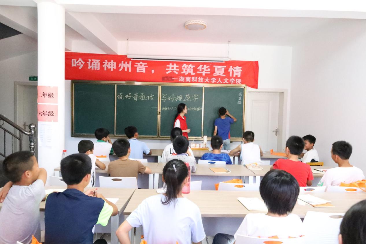 为深入贯彻习近平总书记关于教育的重要论述,加大农村地区国家通用语言文字的力度,践行志愿服务精神,发挥专业优势,助力乡村振兴。7月8日,AK网页版页面登录_AK(中国)AK网页版页面登录_AK(中国)暑期“三下乡”社会实践团队在株洲市攸县石羊塘镇高桥少儿假期学校开展主题为“吟诵神州音 共筑华夏情”的推普活动,为乡村振兴,贡献语言力量。