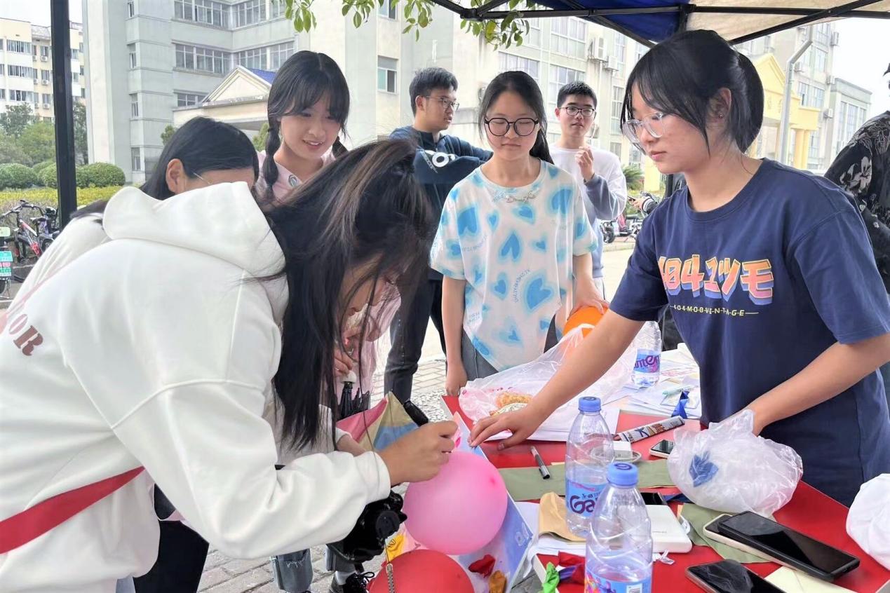 下午一点,学生会相关负责人分别在女生宿舍七区一栋、八区八栋以及八区十五栋楼下设立置物点,进行换福签活动。不少同学前来参与,并在气球上写下自己的烦恼。