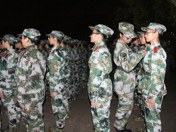 在助班的带领下,新生们早早地来到训练场地整理好队伍,等待教官的到来。晚上7时,各排教官准时来到训练场地。集中完毕后,连长王阳首先作了自我介绍:“我姓王,单名阳,你们看到太阳的时候就是训练的时候。”他指出近期新生中存在的自由散漫等问题并提出五点要求:时刻注意军容军纪,请假时严格遵循程序,弘扬集体主义精神,能够吃苦耐劳,注重礼貌礼节。“当你们穿上军装,你们就不再是学生,而且中华人民共和国的一名预备军人,要用军队的要求来严格要求自己!”,王阳简述了自身在部队中学习到的精神,并以此激励新生不畏艰难,“军队的精神就是,没有困难克服不了,没有敌人战胜不了,没有任务完成不了!”在简单提问以确保新生熟记纪律后,王阳再次强调了请假问题,并补充说明军训不是为了折腾学生,而是为了考验受训者的毅力和耐心,锤炼出军人般的意志,最终将军训中学习到的品质落实到生活中。
