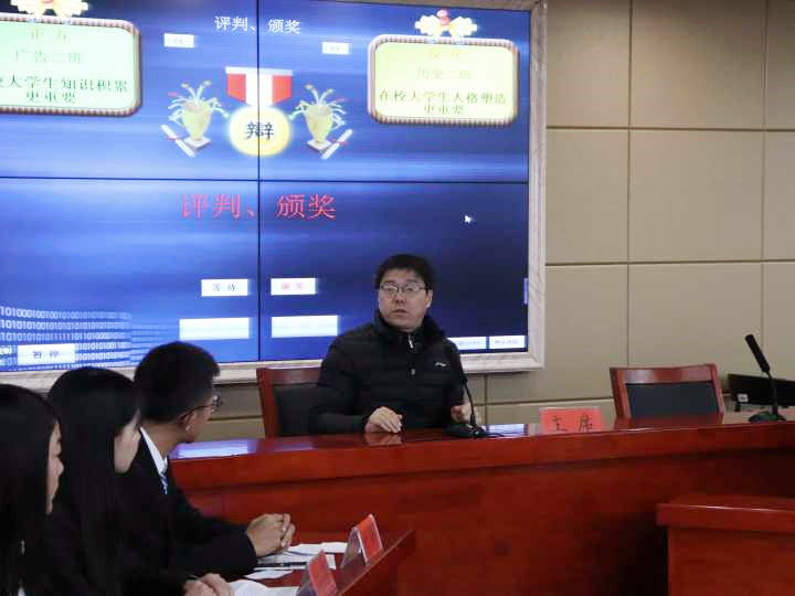 经过前期历时一个月的多轮激战,广告二班代表队和历史二班代表队进入此次冠军争夺赛,赛事分为开篇立论、质询、自由辩论、双方总结及观众提问五个环节,双方围绕“在校大学生知识积累和人格塑造哪个更重要”这一辩题展开激烈辩论。