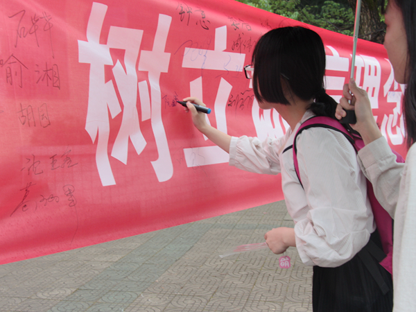 5月30日上午,由我院、机电工程学院、信息与电气学院共同举办的“不信不立,不诚不行”主题展示及签名活动在六区电信路口顺利开展。本次活动不仅展示了诚信同学的优秀事迹,也采用了有奖问答、听歌识曲等活动吸引了一批路人参与其中。