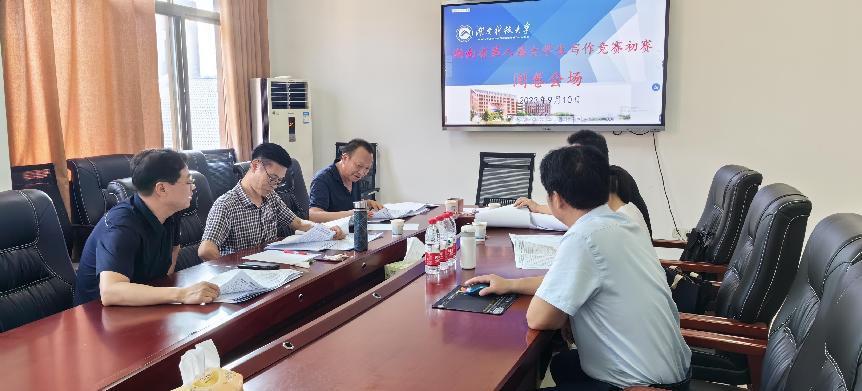 根据省赛赛制要求,本次大赛分三个赛道:评论组、创意组和演讲组。参赛选手由班级推荐2—3名优秀学生参加。比赛分为笔试、评卷、答辩等环节,比赛时长两小时。10日下午三点开始评卷,我院党委书记曾志东、主持工作的副院长李康澄、党委副书记罗振军到场指导工作,并作出相关指示。
