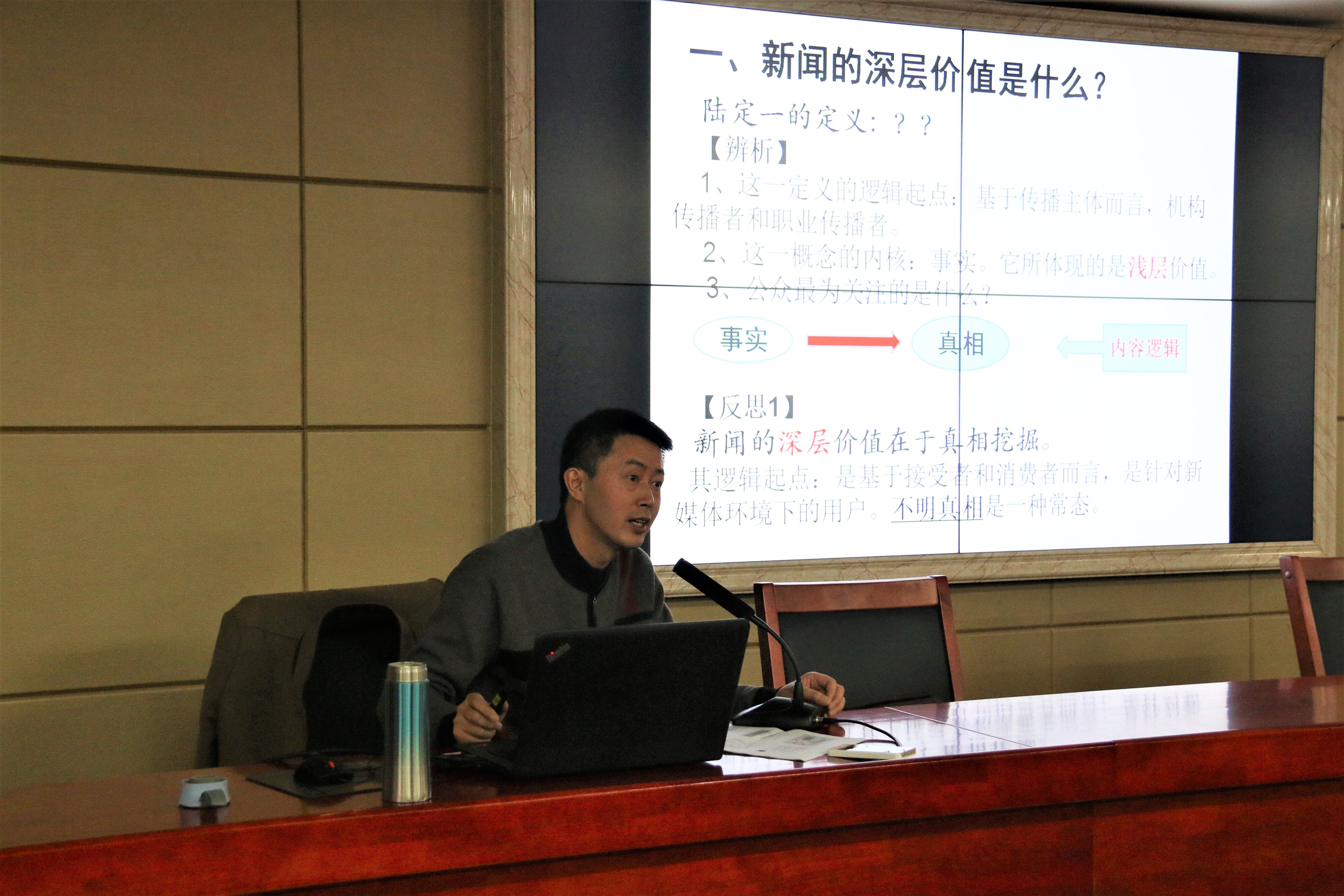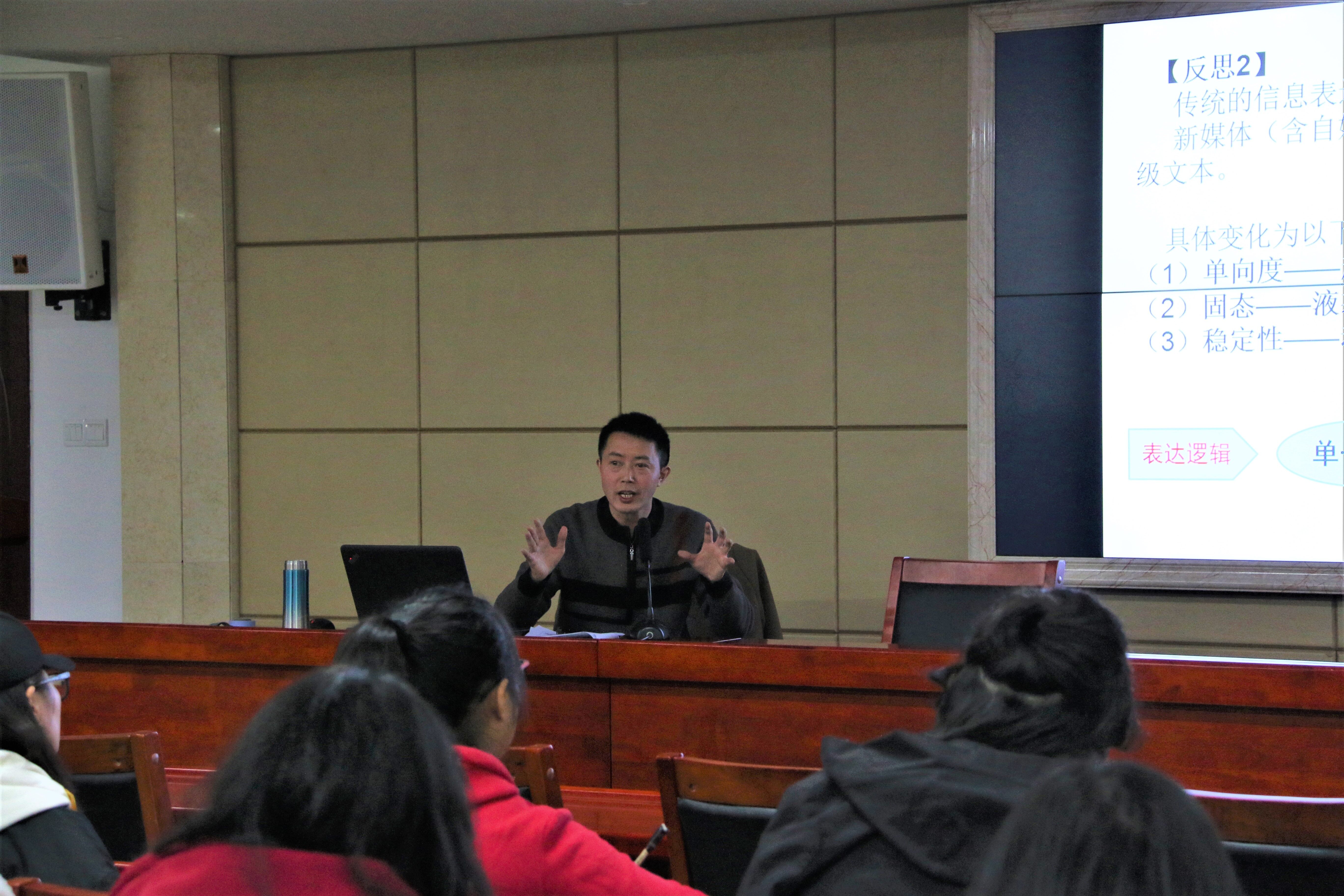 11月29日晚,四川大学教授王炎龙应我院邀请于立言楼B4-1作“媒介变革下传播理念的追问与反思”的主题性讲座,此次讲座由我院陈功博士主持,我院袁新洁、黄洪珍、李康澄等老师到场聆听,16、17级新闻专业的学生到场聆听。