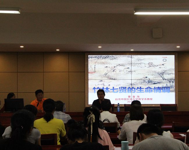 9月14日晚,我院邀请台湾中国文化大学哲学系教授曾春海于立言楼B4-1举行以“竹林七贤的生命情调”为主题的学术讲座。讲座由张晚林教授主持,颜中军、朱学恩、陈芷烨、王霞等老师以及16级哲学、17级思想政治教育1班、3班学生到场聆听。