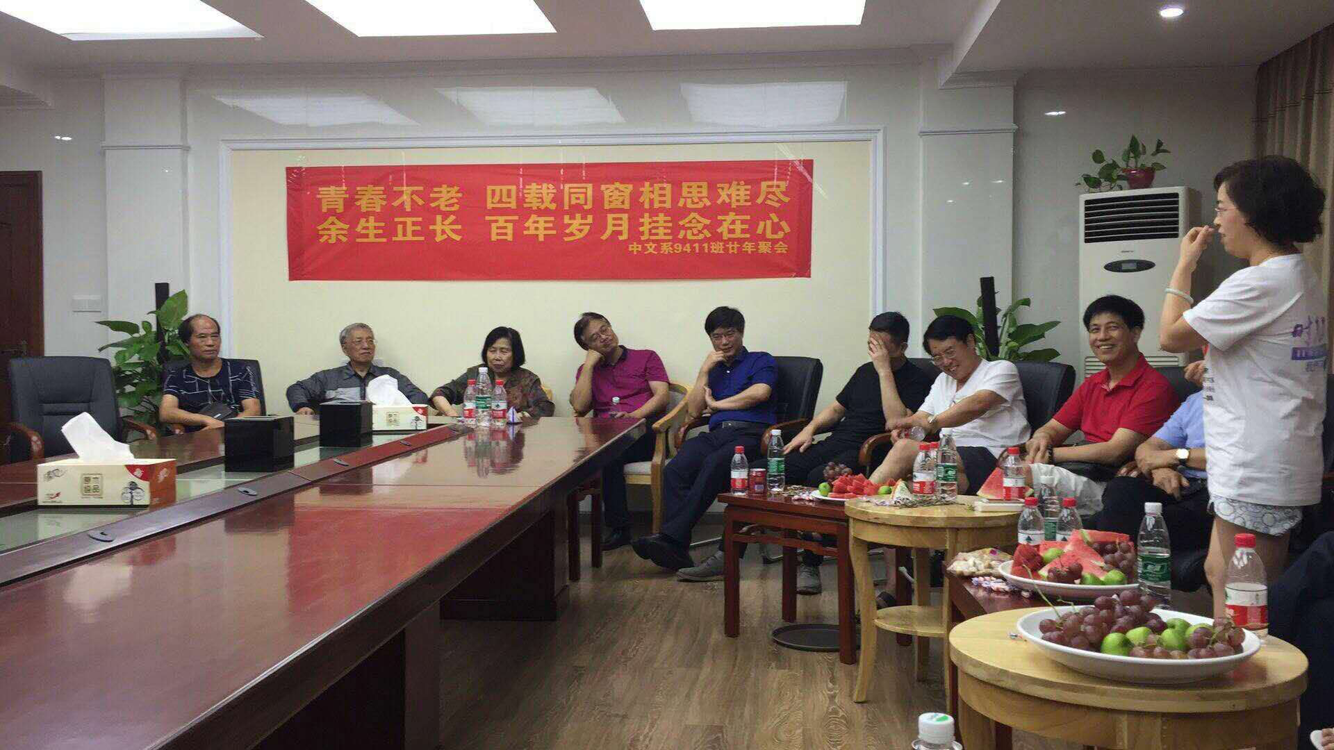 2018年7月21日,中文系9411班毕业生回到母校,欢聚在夏花绽放的美丽校园。再度相逢,共忆往昔。感谢母校师恩,找寻求学足迹,互道平安祝福,共勉未来征途。