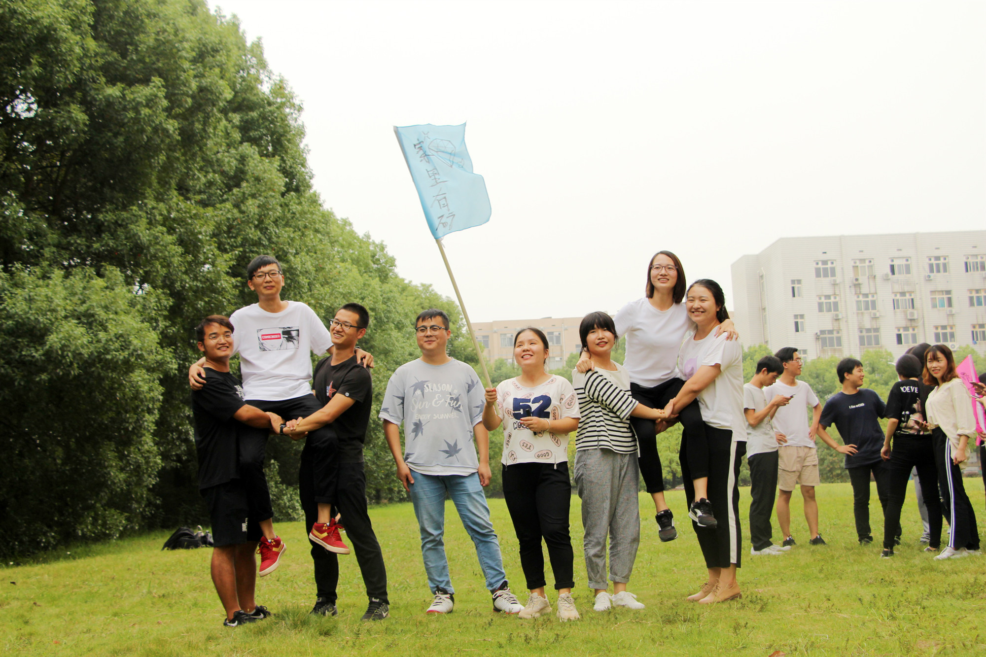 随后,教练将大家随机分成男女比例基本一致的4组,并要求每支队伍在规定时间内完成团队组建。组建内容包括:每支队伍选出队长、队秘和旗手,共同设计队徽、队形等。经过半小时的奇思妙想,产生了“地表最强”、“家里有矿”、“男女平等”、“Flying Rocket”4支队伍,展现了各自的团队风采。新颖的队名、嘹亮的歌声、多样的队形,将“知行合一”的主题完美诠释。