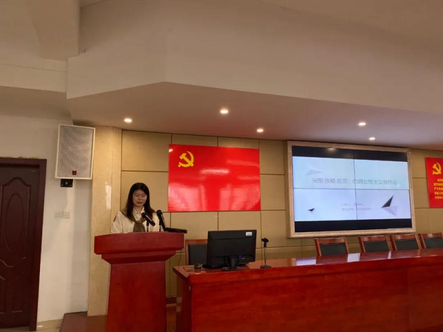 李慧娟同学分享的题目是《袁昌英的女性意识研究——以其戏剧创作为中心》,围绕女性主义视角下的戏剧创作、双性同体的女性主义诗学、异域话语背后的传统精神三个层面展开剖析。